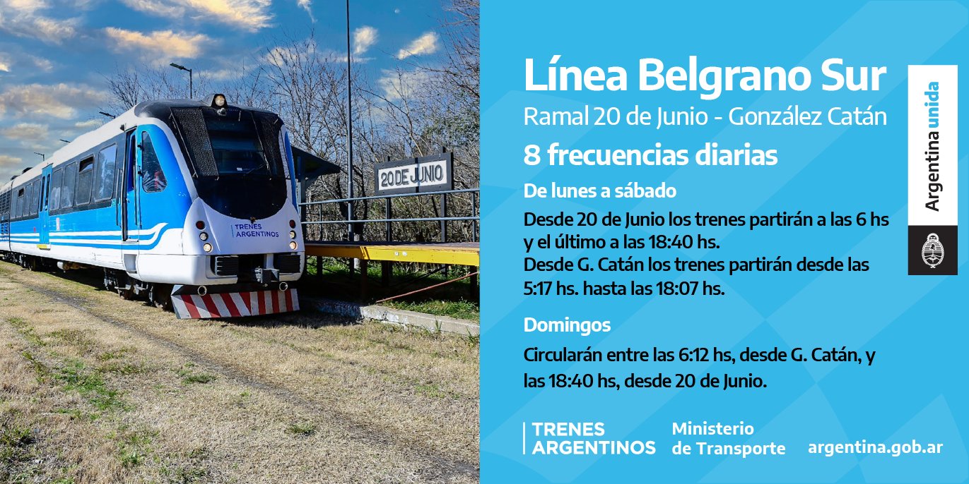 Trenes Argentinos.gob.ar | Trenes Argentinos On Twitter A Partir De Hoy Retorna El Servicio Que Une Gonzalez Catan Con 20 De Junio De La Lineabelgranosur De Esta Manera Seguimos Conectando A Mas Personas A